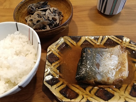 レトルトのサバ味噌煮を温めて、簡単美味しいランチでした(^^)