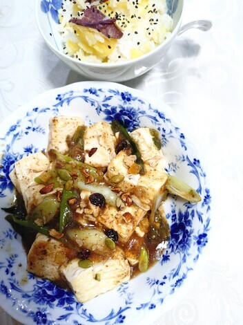 さつま芋ご飯とあんかけお豆腐を
