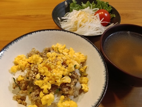 肉そぼろ丼に大根サラダで夕飯でした(⁠^⁠^⁠)