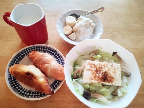 塩パン、温奴、バナナヨーグルト、ホットミルク