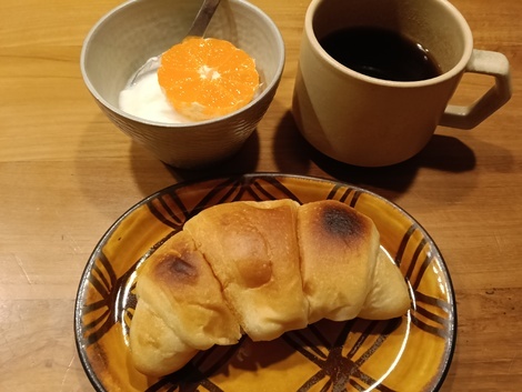 クロワッサンで、いつもの朝ごはんでした(^^)