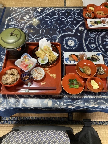 昨日のお昼ご飯です。県内の座敷童子ちゃんがいるお店で御膳をいただきました。不思議な話がいっぱいの座敷童子ちゃんの部屋に入ると、エアコンも何もついていないのに、昨日はずっと着物が揺れてくれてありがたかったです。御膳には写真の料理の他に味噌汁とくるみだれ蕎麦がつきます。ご馳走様でした。