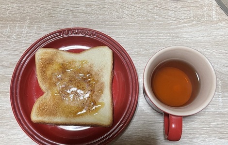 今日の朝食はバターシナモンシュガーはちみつトーストです