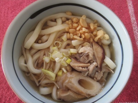 お昼 うどんでした 途中から焼き餅を入れて力うどんに。