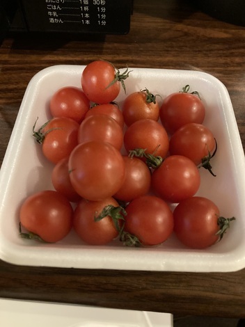 昨朝、雪が降る県から飛行機に乗って関西へきました。今日の朝ご飯はビジネスホテルの一室でミニトマト。いつもは朝ご飯は食べないのですが、今は耳鼻科の内服薬が朝昼晩とあるのでいただきます。昨日のうちにスーパーへ行ってミニトマトを仕入れてきました。