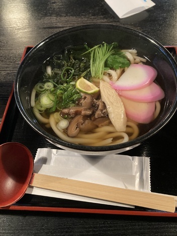 関西旅行中のお昼ご飯。しっぽくうどん。豪華〜。ネギだと思ったらゆばでした。かまぼこが3枚ものっていました。