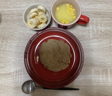オートミール粉末豆腐パン、はちみつバナナ