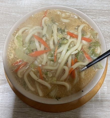 ぷちっとなべの味噌濃厚スープに豆乳をプラスして煮込うどんに