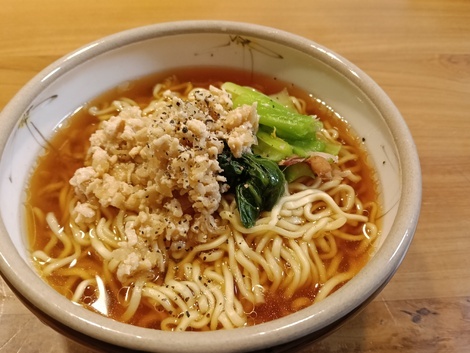 土曜のランチはインスタントラーメン(^^)作り置き肉そぼろをトッピングしました♪