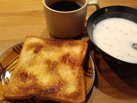 シュガートーストにポタージュスープで朝ごはんでした(^^)