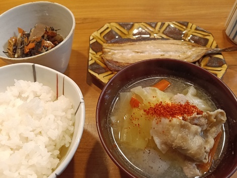 具だくさん豚汁にサンマ…あったまる夕飯でした(^^)❤️