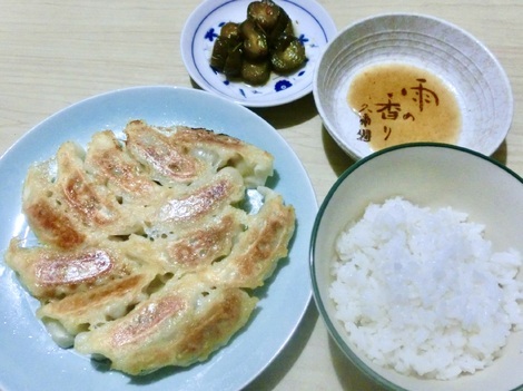 ご飯、餃子、漬物を食べました。