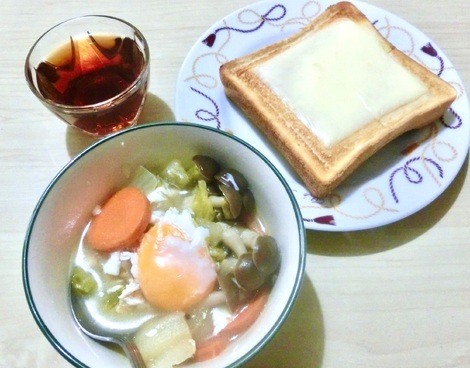 チーズトースト、鍋料理を食べました。