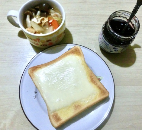 チーズトースト、鍋料理を食べました。