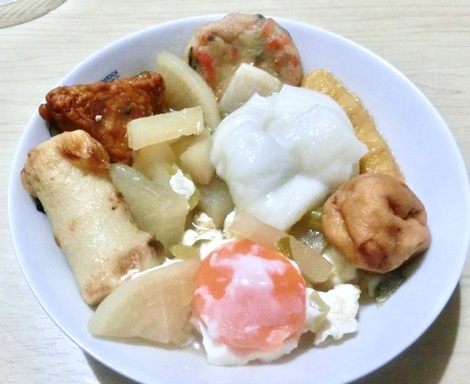 お餅を入れたおでんを食べました。