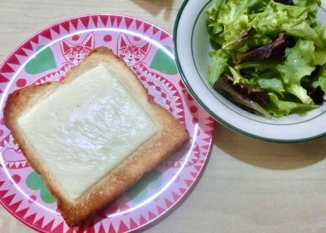 チーズトースト、サラダを食べました。