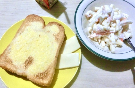 トースト、チーズ、マカロニサラダを食べました。