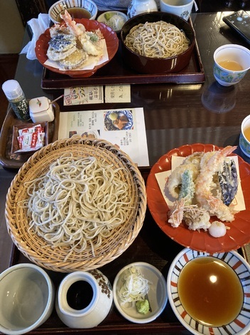 自宅から25kmの蕎麦屋さんでお昼ご飯。夫は天せいろ、私は粗挽き天せいろにしました。14時の閉店時間前に蕎麦が売り切れになって早めにのれんがおりる人気店です。