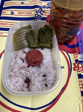 今日のバイト弁当。梅干し弁当に次姉からもらった青菜漬け入りです。姉二人とも料理上手で惣菜をもらえて助かっています。この週3日のバイト生活も3/31まで。月に12日間勤務すれば、勤務日を変更して1週間の連続休みもOKで、バイト時間中に立って歩くのはコピーを取る時だけのデスクワークでありがたかったです。