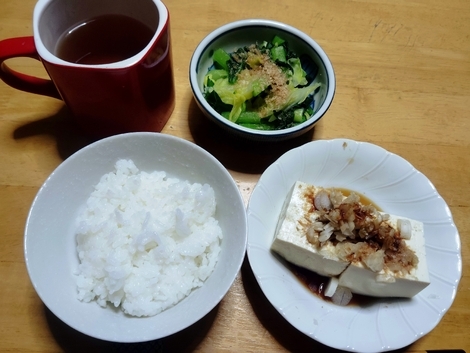 ごはん、温奴、ゆで小松菜