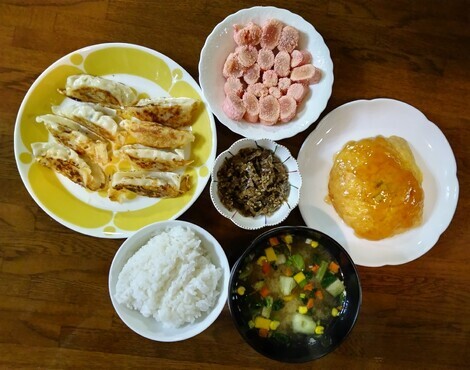 餃子、たらこ、あんかけ卵焼きなどを食べました