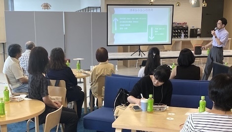 当日は、山口先生から「ふれあい」をテーマに、幸せホルモン「オキシトシン」を日常に取り入れるヒントを伺い、クイズを交えながらオキシトシンの秘密について楽しく学ぶひとときとなりました。