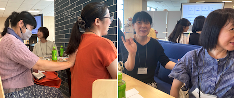 ふれあいによって分泌される幸せホルモン「オキシトシン」のさまざまな効果を知っていただいて、みなさんが笑顔で参加している様子をみて、スタッフも一安心。一緒に楽しむことができました^^
