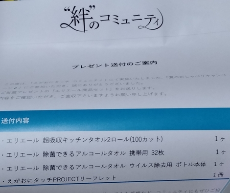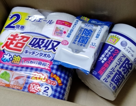 夏のおしゃべりキャンペーン♪に参加して、エリエール除菌できるアルコールタオルなどを頂きました。ありがとうございます😊