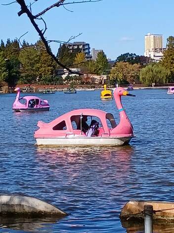 お天気がいいと、スワンボートがたくさん泳ぎはじめます。