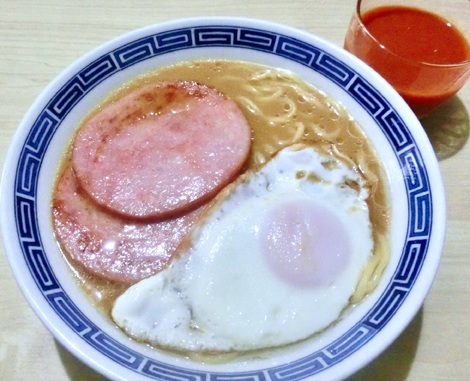 醤油とんこつラーメンに目玉焼きを乗せて食べました。