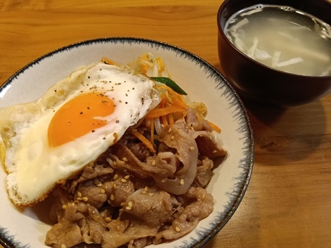 ビビンバ丼に、半熟卵をトッピング(^^)