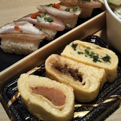 辛子明太子と牛肉のしぐれ煮とネギのだし巻き玉子を食べました♪(^^)