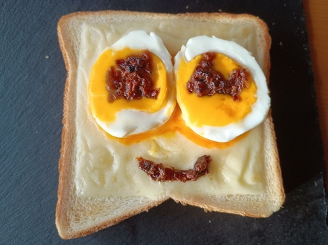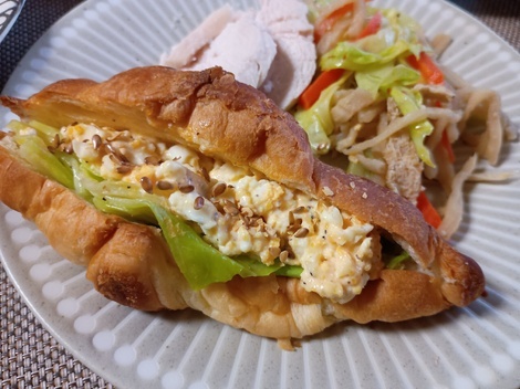 簡単な半熟茹で卵をのせたチーズトーストや、クロワッサンに卵とマヨなどで作った卵サンドです