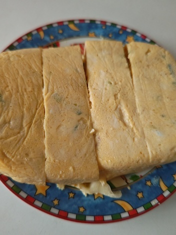 レンチンで作る玉子焼きは、フライパンを洗わずに済みます😍油も使わないからヘルシーですよ👌