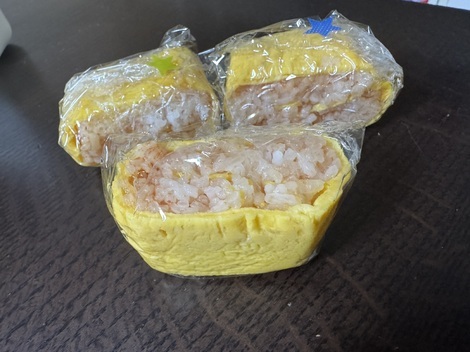 ▼ 今日もたまご大好き!みんなで食べたら報告お弁当用にオムライスおむすび作りました🥚