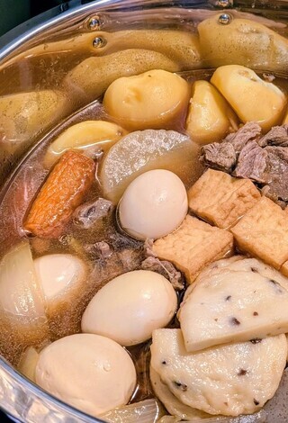 居酒屋さんのおでん。どれにしようかな…って、もちろんたまご、ダイコン、こんにゃくの三種の神器から。