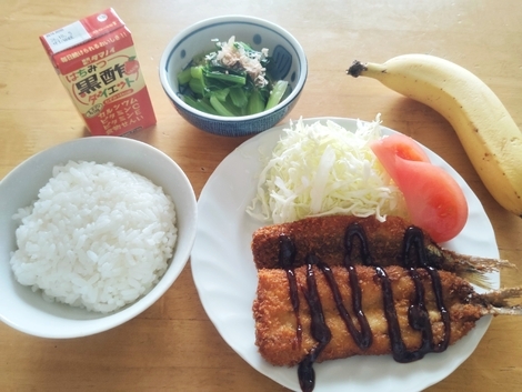 イワシフライの衣に卵を使いました。
