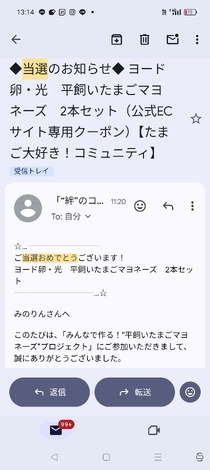 みのりんさん当選㊗️おめでとさんでウキットさんウキット師匠だよ師匠も同じのさらさらっと当たってヨード卵ゆで卵に掛けてダブルヨード卵で食べようと思ってるよ!そしてヨード卵・光さんマヨネーズはいつもアレだったから最高級マヨネーズありがとう🐵🥚🍳🐒