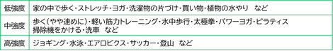 (表2:身体活動(運動および生活活動)の強度と内容)