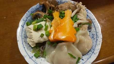 「一人のご飯でシンプルに鶏だしスープで『ぷるもち水餃子』を煮て、たっぷりの青ねぎを添えていただきました。ダシの旨味を吸った水餃子が、ぷるっとした食感と共に絶妙な美味しさ!寒い日にはこれだけで大満足の一杯です。」