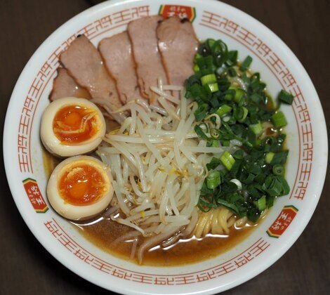 会社の友達から、お土産で頂いたラーメンに、トッピングをして、「〇〇の餃子」のポイントで頂いた器に入れて(笑)手作りラーメン作りました♪美味でした・・・☆🍺