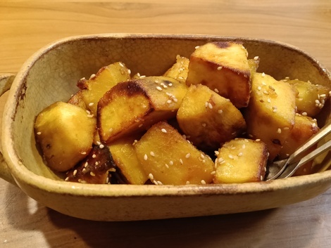 娘が掘ってきたさつまいもで、大学芋風のおやつを作りました(^^)❤️