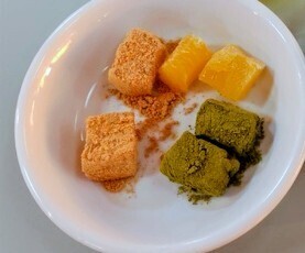 きなこわらび餅、抹茶わらび餅、マンゴーわらび餅を食べました。