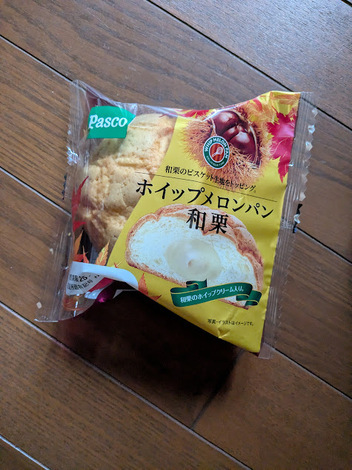 菓子パンで栗を満喫中。塩味あるパンでマロンあんが引き立ちますね。