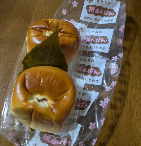 つぶあんと求肥、桜の葉を包んだ和菓子をいただきました。