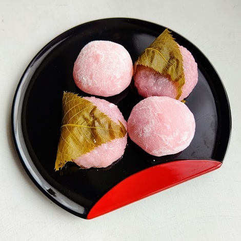 桜餅と白あんの入った桃大福を食べました。