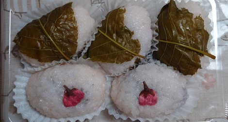 塩漬けした桜の葉っぱにくるまれたお餅が美味しい