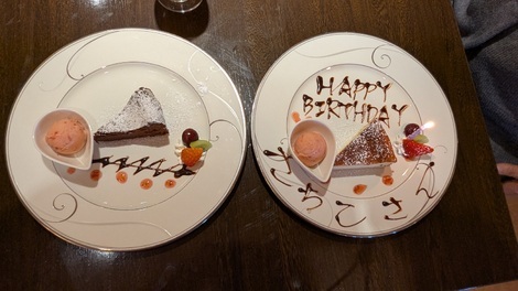 そのお店で、奥様の誕生日をされたのかな…デザートプレートに「バースディメッセージと名前」が書いているので…