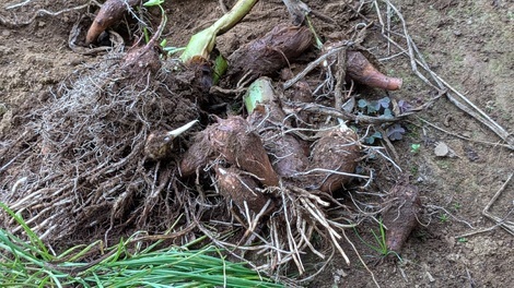 試し掘りの里芋は、順調に育っていましたかね!