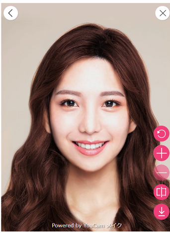 PCの場合は、自分の顔でシミュレーションすることもできますし、写真をアップロードしたり、モデルさんの写真でカラーチェンジを試すこともできます。(モデルの選択はPCのみ)